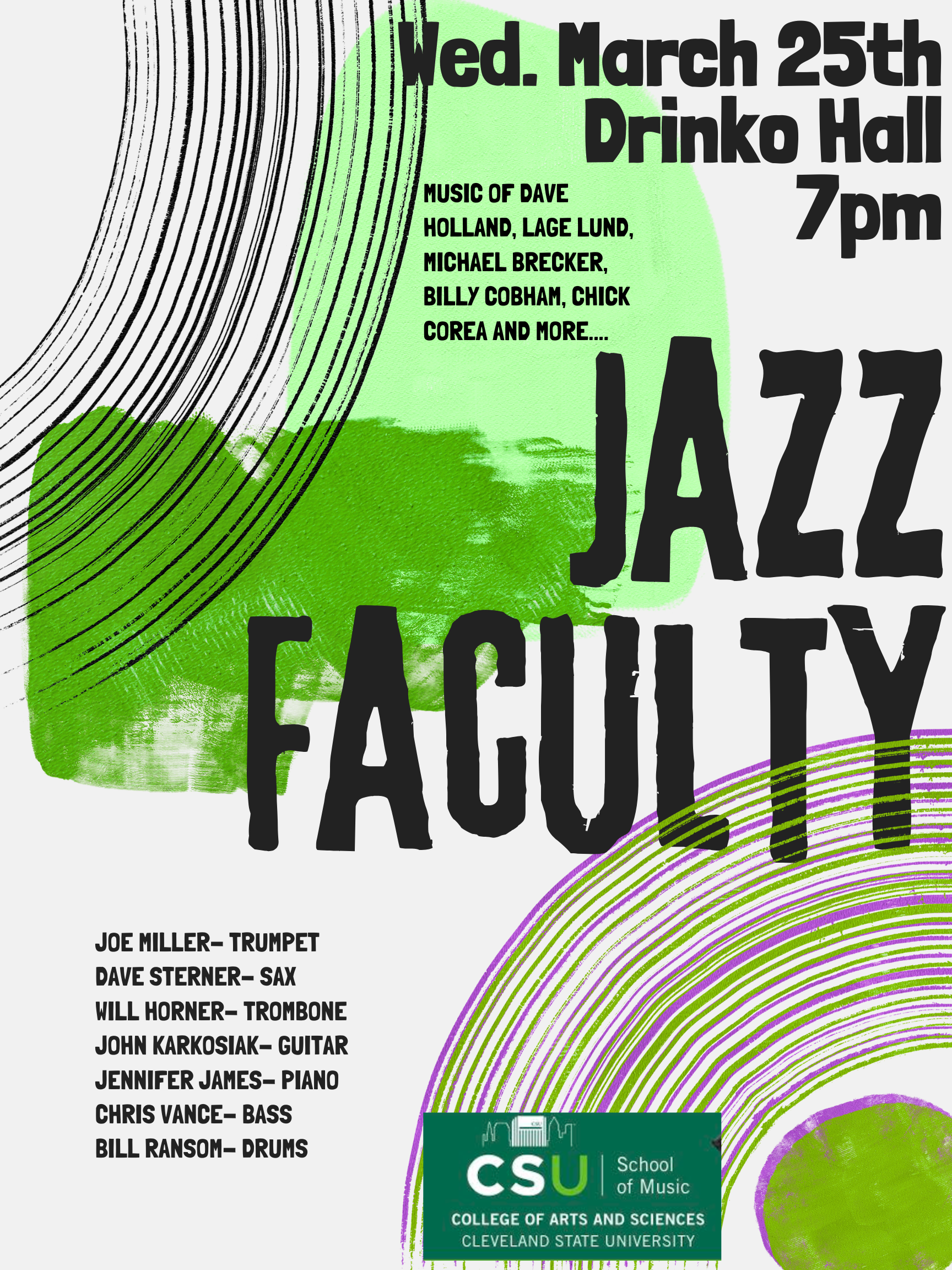 CSU Jazz Faculty Recital Wednesday, March 25, 2026 7:00 PM 9:00 PM Drinko Hall 2121 Euclid Avenue Cleveland, OH, 44115 United States (map) Google Calendar ICS